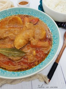 - Épluchez et couper les pommes de terre et les carottes en deux. Ajouter à la sauce, ainsi que les gombos (c’est facultatif, mais j’aime beaucoup). Ajouter le poulet et laisser mijoter à feu doux.